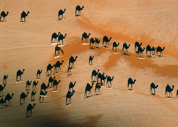 ぱっと見た瞬間、「ラクダの群れが、砂漠を歩いてる」と誰もが見て取れるでしょう。