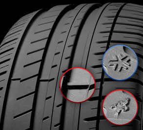 タイヤには「ここまで磨り減ったら交換してね」というマーカーがあり、ちょっとつるつるになってきたなと思ったら、交換の時期です。