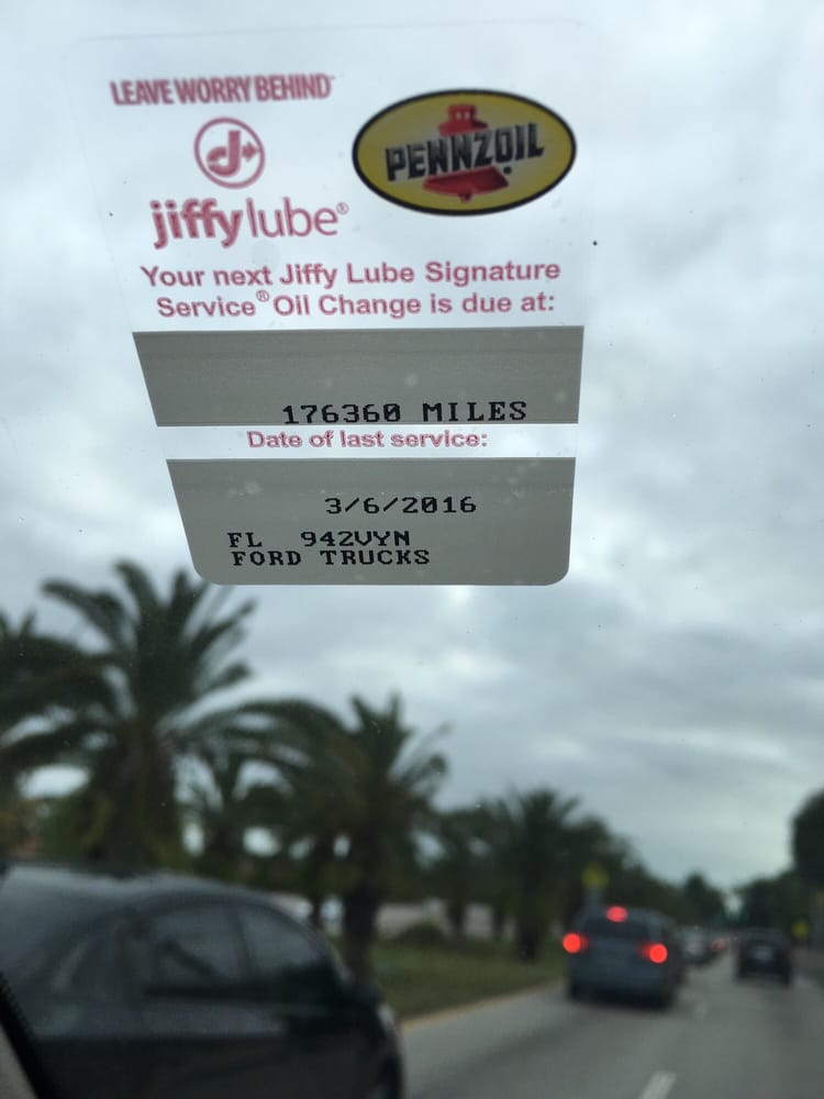 Jiffy Lubeでは「次はいつ来てね」というスティッカーを窓に貼ってくれるので、それを目安に次のオイル交換に持って行きます。